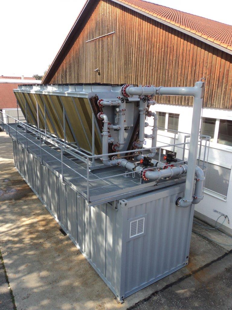 - Kompakte Kälteanlage mit Rückkühler (Container-Lösung)